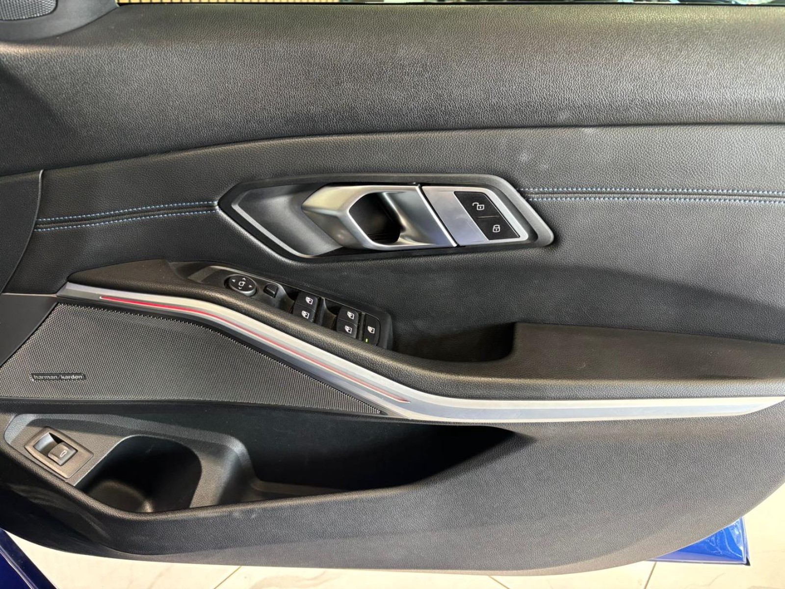 Introducing the stylish BMW 3 Series 320d M Sport in stunning Portimao Blue Metallic, a true driver’s delight. Whether cruising through or exploring beyond, this BMW promises a dynamic and stylish experience. Please note: Accident report info is on the last image.Finance with all major banks.-Leather 'Vernasca' Black with contrast stitching blue -Sports seats for driver and front passenger-Run flat tyres-Smoker's package -Cruise control with brake function -LED Fog lights and LED headlights -TeleServices-ConnectedDrive services-Comfort access-M Sport package -Glass sunroof, electric with sliding and vent function -Ambient interior lighting -Parking assist-Head up display-Harmon/kardon surround sound system -Wireless charging -BMW Live cockpit professional-M Sports suspension-M Aerodynamic kit -BMW Individual high-gloss shadow line -Anthracite roof lining -Reverse camera